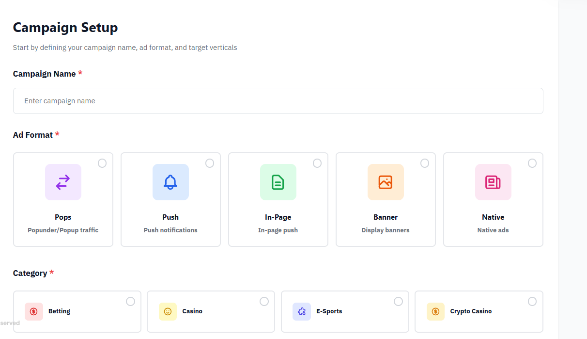 Pick between push, pops, in-page push , banner or native - tailored to your iGaming offer.